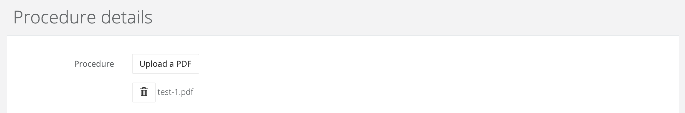 - Scroll down to the Procedure details section to review the list of uploaded PDFs and the WYSIWYG content: