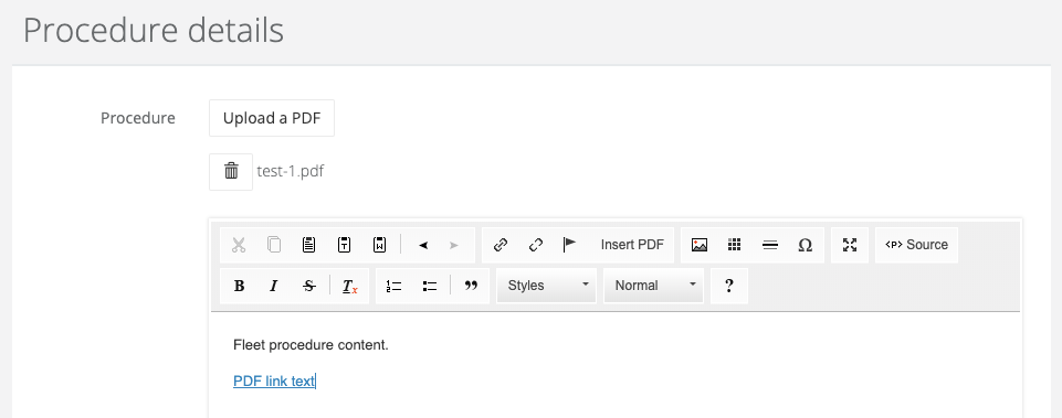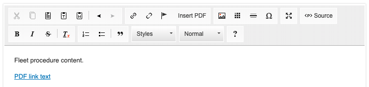 While the primary content of a Fleet procedure should be entered directly, you can link to external files such as PDF files containing specific processes or forms to be completed during servicing.