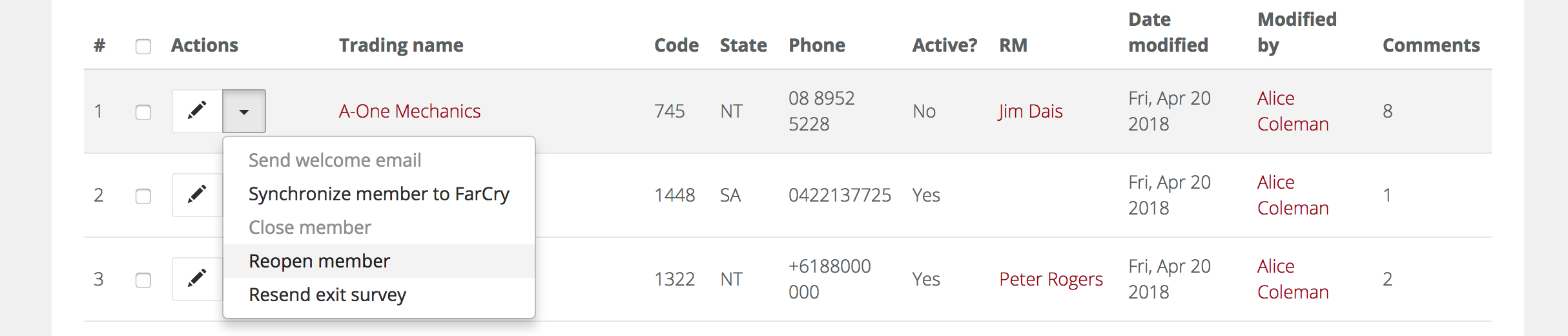 Should a member choose to return to the RAS program they can simply be reopened. All you need to do is come back to the member record, click the down arrow and select reopen member and they will again be active.