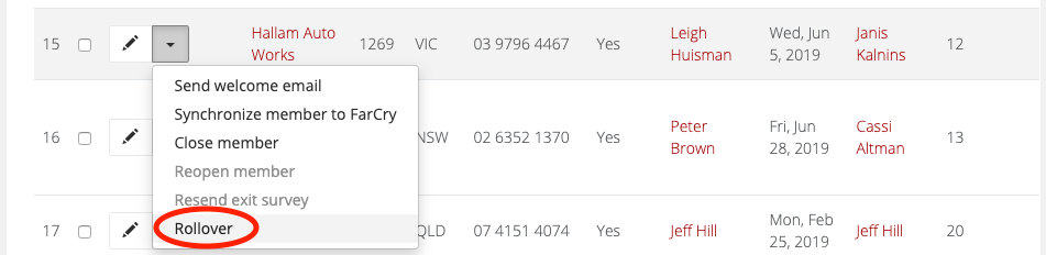 This process also allows us to properly capture the information we require for membership reporting. To rollover a member;