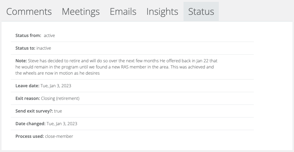 As part of the member exit process update there is now a status tab on the member overview to capture and report on status changes for members.