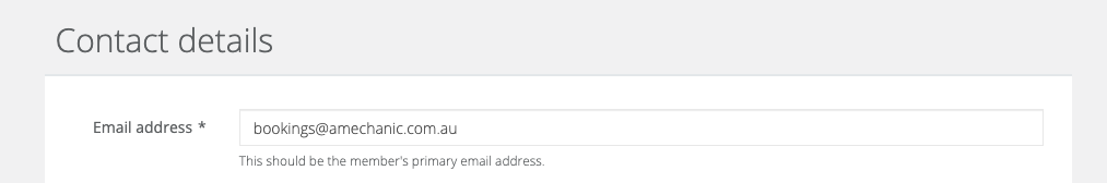 The password reset process is associated with the email address under a member's contact details in MMS;