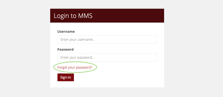 - Forgot password links can be found at all login screens (i.e. RASNET, MMS).