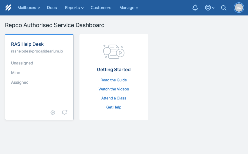 - You will land on the dashboard, click on the RAS Help Desk card and you will be taken to the help desk inbox.