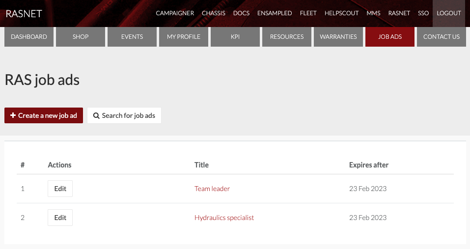 Job advertisements will under usual circumstances, be created by members using RASNet.