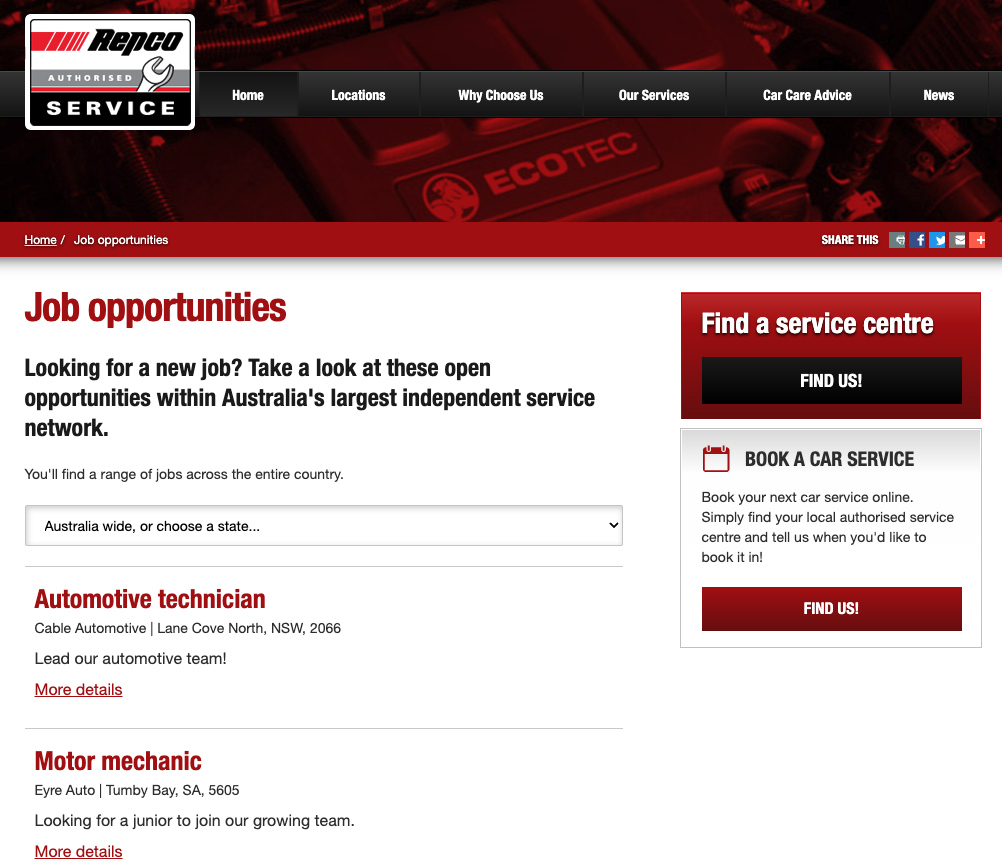 Job advertisements are automatically displayed on www.repcoservice.com. Once a job has expired, it will no longer appear in the list.